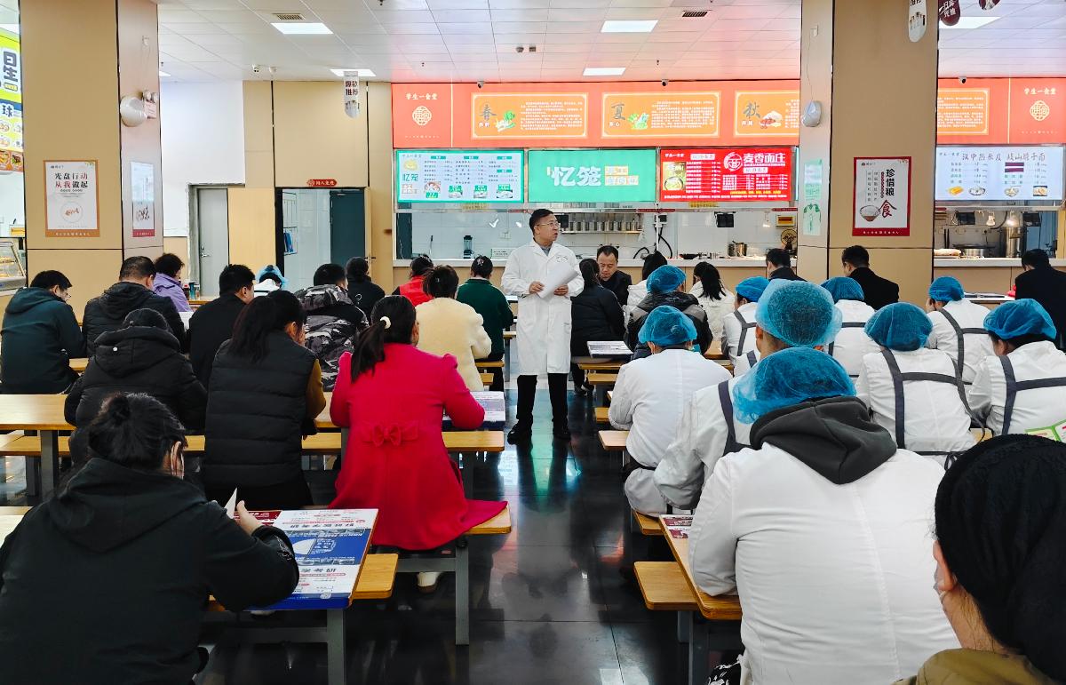 齐宝宁结合近日国家疾控局综合司印发的《学校等重点场所诺如病毒感染防控消毒技术指南》(以下简称《指南》),详细宣讲了诺如病毒如何传播、诺如病毒胃肠炎有哪些主要症状以及如何治疗等知识,重点讲解了《指南》中关于食品卫生安全方面内容:要保证食材采购、储存、加工等环节的食品安全,食用蔬菜和水果时要洗净;烹饪加工食品时要做到生熟分开,应使用不同的砧板、刀具及容器处理生熟食品,避免交叉污染;确保食物煮熟煮透,特别是贝类等海产品;食堂员工应严格遵守个人卫生规范,操作前后彻底洗手,穿戴清洁的工作服和帽子;做好食堂员工症状监测与感染者管理,坚决杜绝带病上岗,加强对食品餐(饮)具消毒和工作环境定期清洁通风。